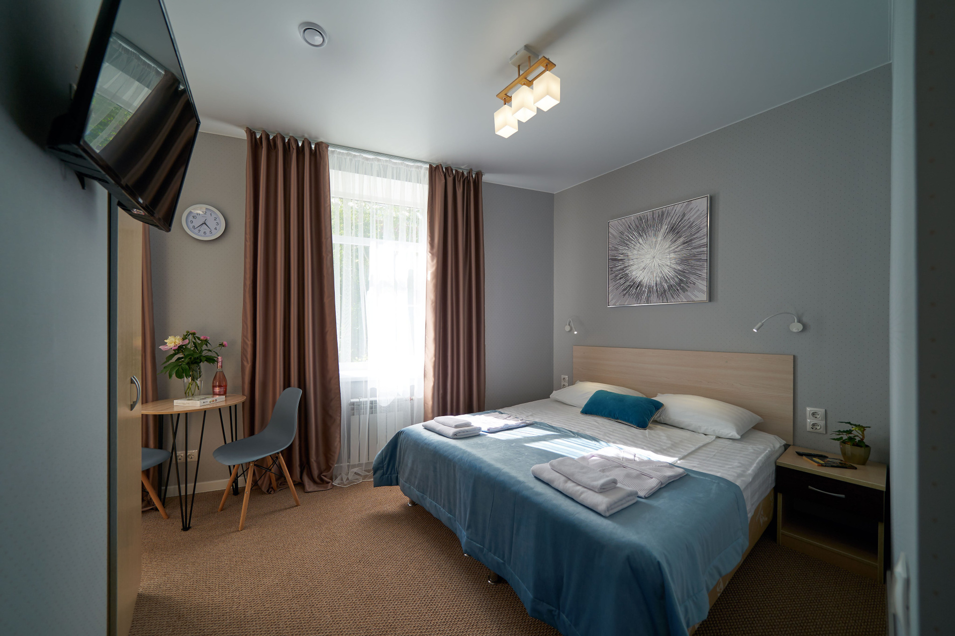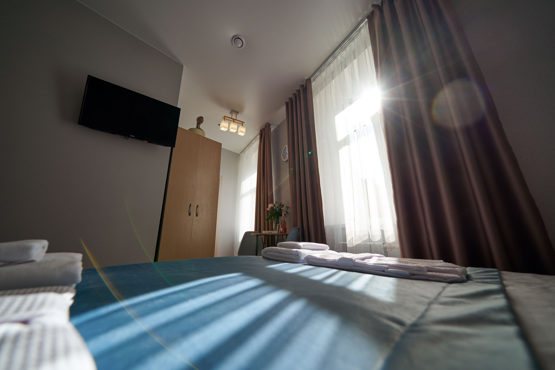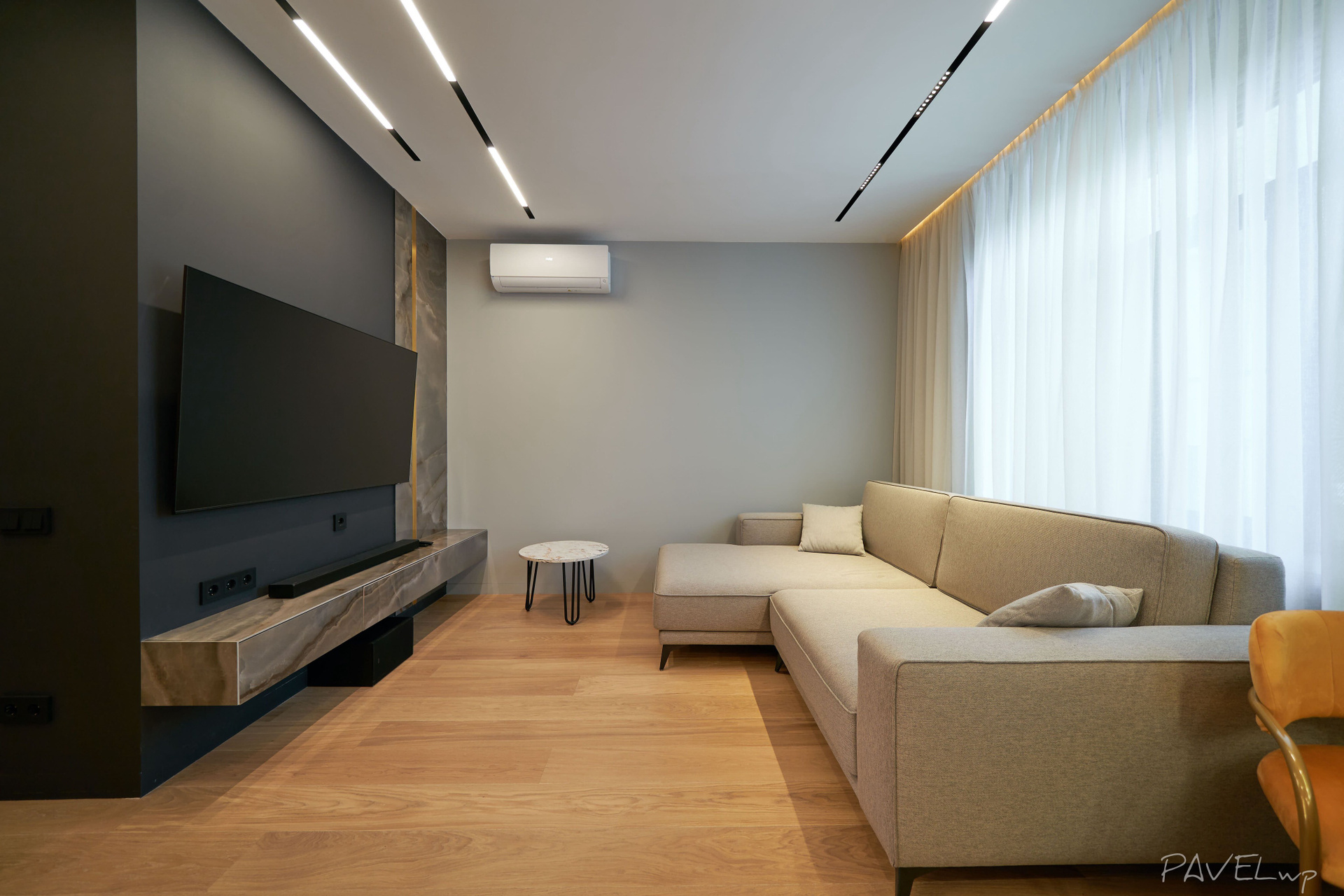 Retouch: clean surfaces, straight lines; optional element additions (e.g., TV) and AI tools as needed.