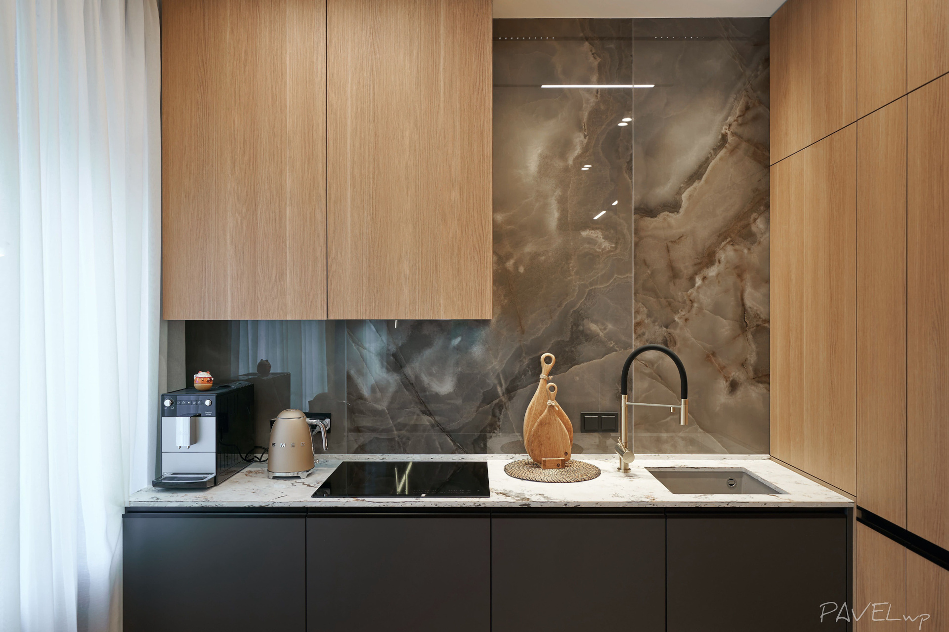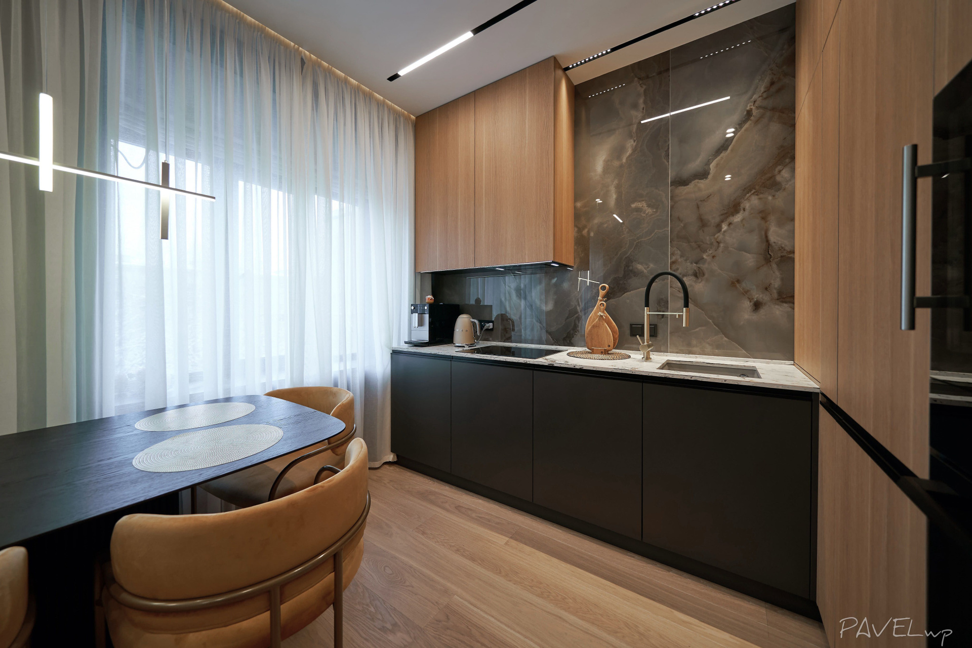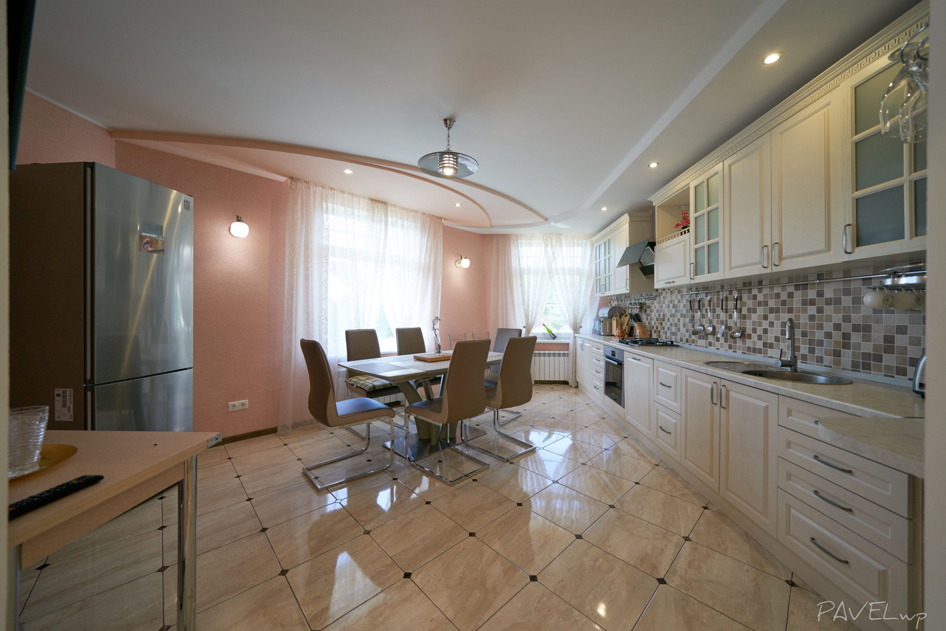 Retouch: clean surfaces, straight lines; optional element additions (e.g., TV) and AI tools as needed.